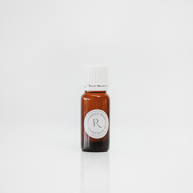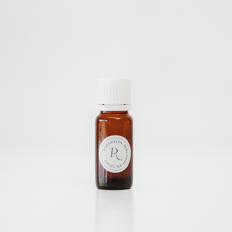 ‘n Mengsel van Ruah essensiële olie vermeng met botaniese geure.